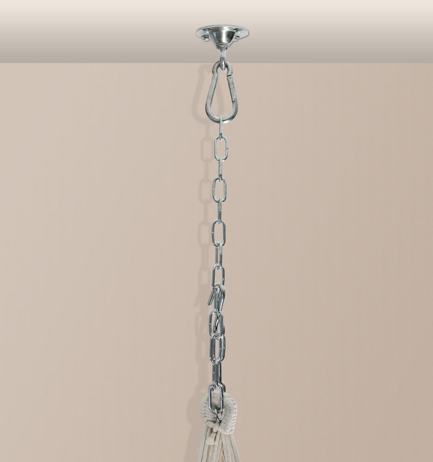 Ein Hängesessel sollte immer drehbar aufgehängt werden, damit sich die Aufhängeschnüre nicht abscheuern können und damit man in die Wunschrichtung baumeln kann. Power Hook wurde mit seinem integriertem Kugellager für sanfte Drehbewegungen entwickelt, er ist jedoch nicht für Schaukelbewegungen geeignet.