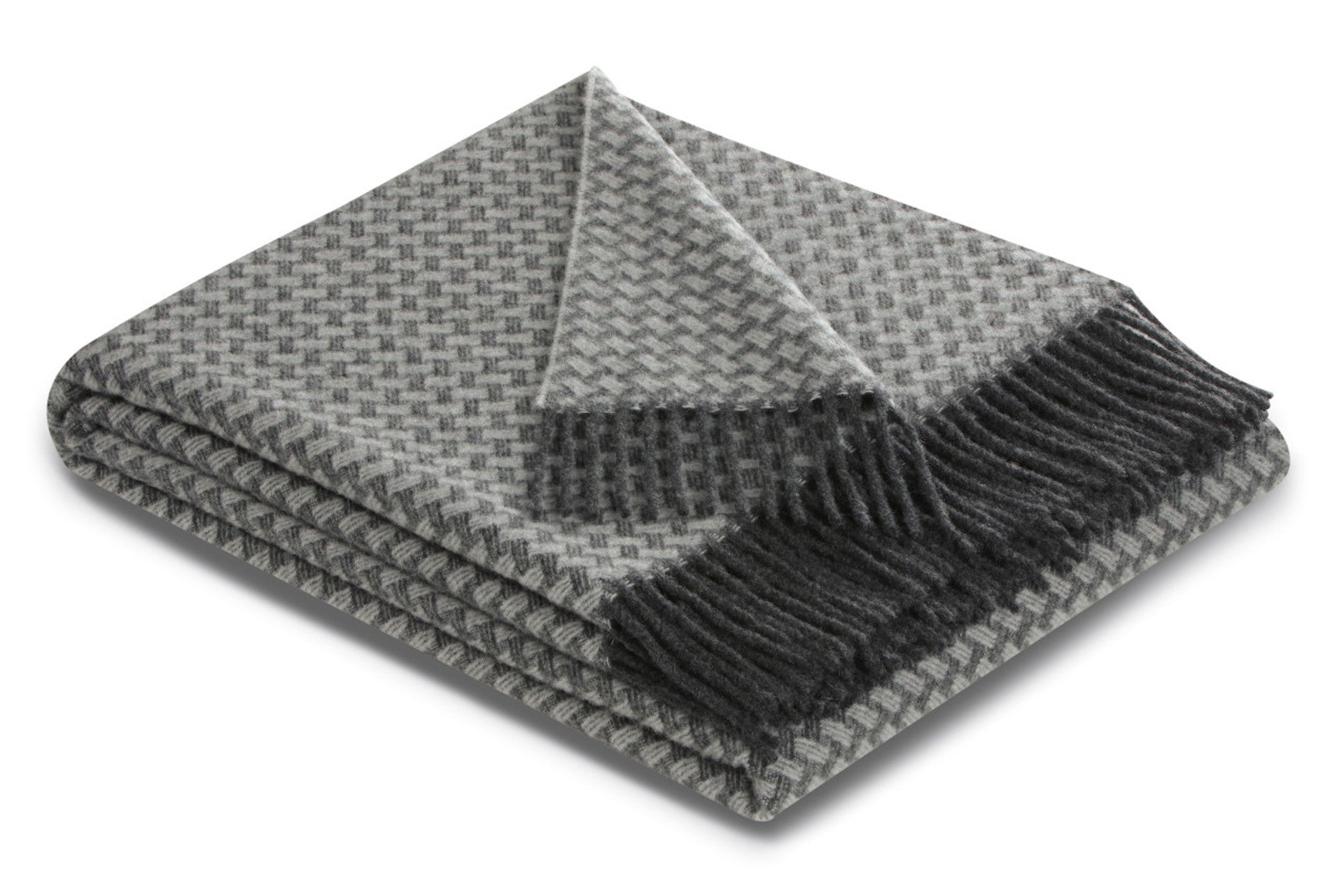 Mit diesem hochwertigen anthrazitfarbenen Fransenplaid aus edlem Materialmix hält die Eleganz Einzug. 70% Kaschmir und 30% Schurwolle sorgen für angenehme Wärme und luxuriöses Kuschelvergnügen. Das geometrische Dessin in raffinierter 3D-Flechtoptik unterstreicht den eleganten Charakter der herrlich leichten Decke ebenso wie die feinen langen Fransen in Schwarz.