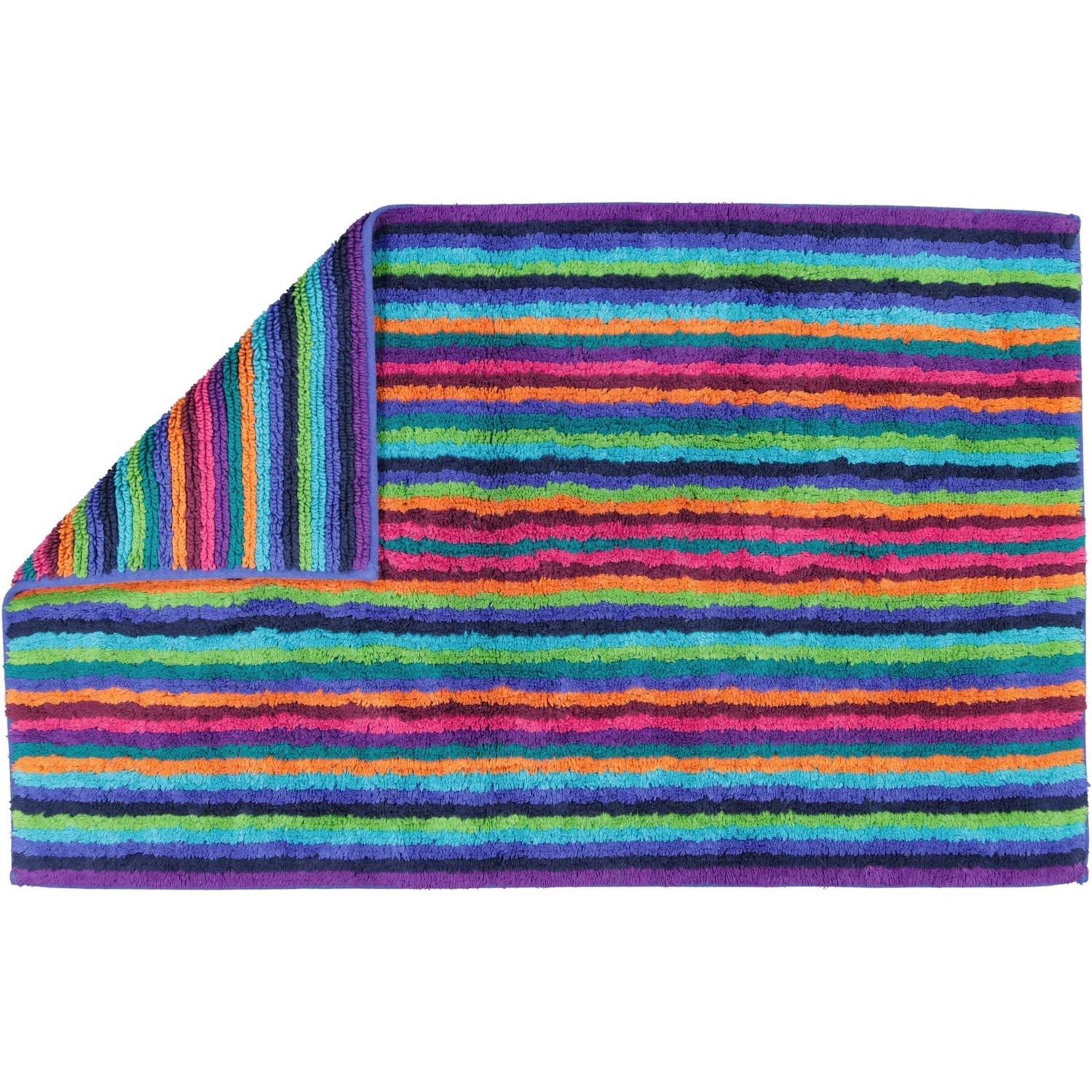 Mit dem bunten Badteppich Life Style 7048 von Cawö zieht gute Laune in Ihr Badezimmer ein. Frisch und mit einem lebhaft farbenfrohen Streifen-Design verwandelt der Cawö Badteppich Life Style 7008 multicolor Ihr Bad in eine fröhliche Wellness-Oase. Harmonische Streifen im passenden Farbspiel machen dieses kuschelige Highlight zu einem modernen Eyecatcher. Der flauschig-weiche Badvorleger ist beidseitig verwendbar, aus hochwertiger Baumwolle gefertigt und eine echte Wohltat für Ihre Füße. Eine angenehme Grammatur von 2200 g/m² sowie die Kombination aus großen Schlaufen und Velours verleihen diesem stilvollen Badezimmer-Accessoire eine besonders raffinierte Optik.