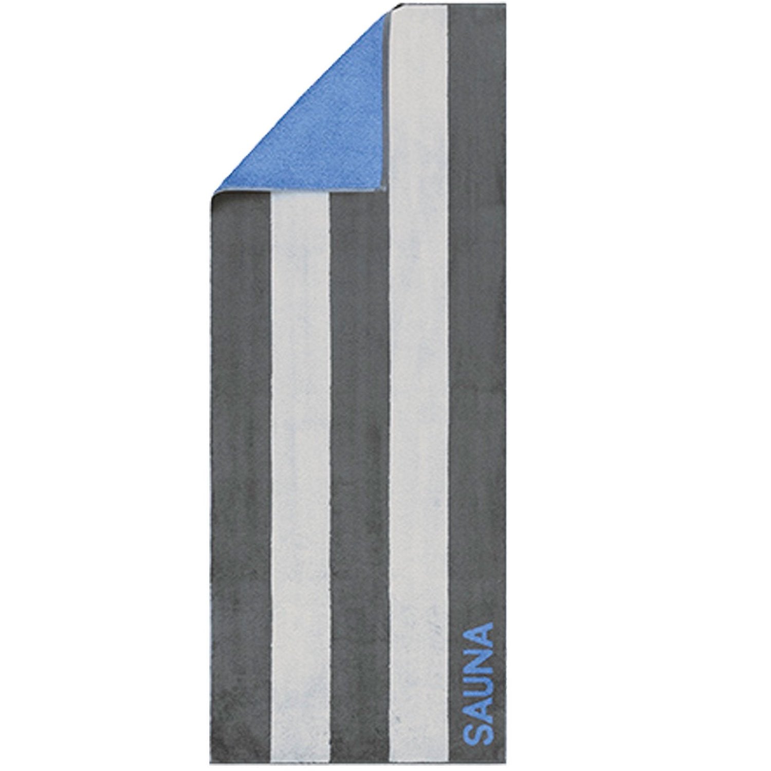 Hochwertiges, modernes Saunatuch 599 von Cawö! Attraktives Streifendesign bringt Frische für jeden Saunabesuch. Dieses Saunatuch ist der ideale Begleiter für Ihren Saunagang. Mit seinem raffinierten Doubleface-Look können Sie sowohl eine gestreifte Seite in Grautönen sowie eine aussagekräftige Uni-Seite genießen. Ganz nach Lust und Laune! Es besteht aus 100% Baumwolle und daher besonders weich und saugfähig.