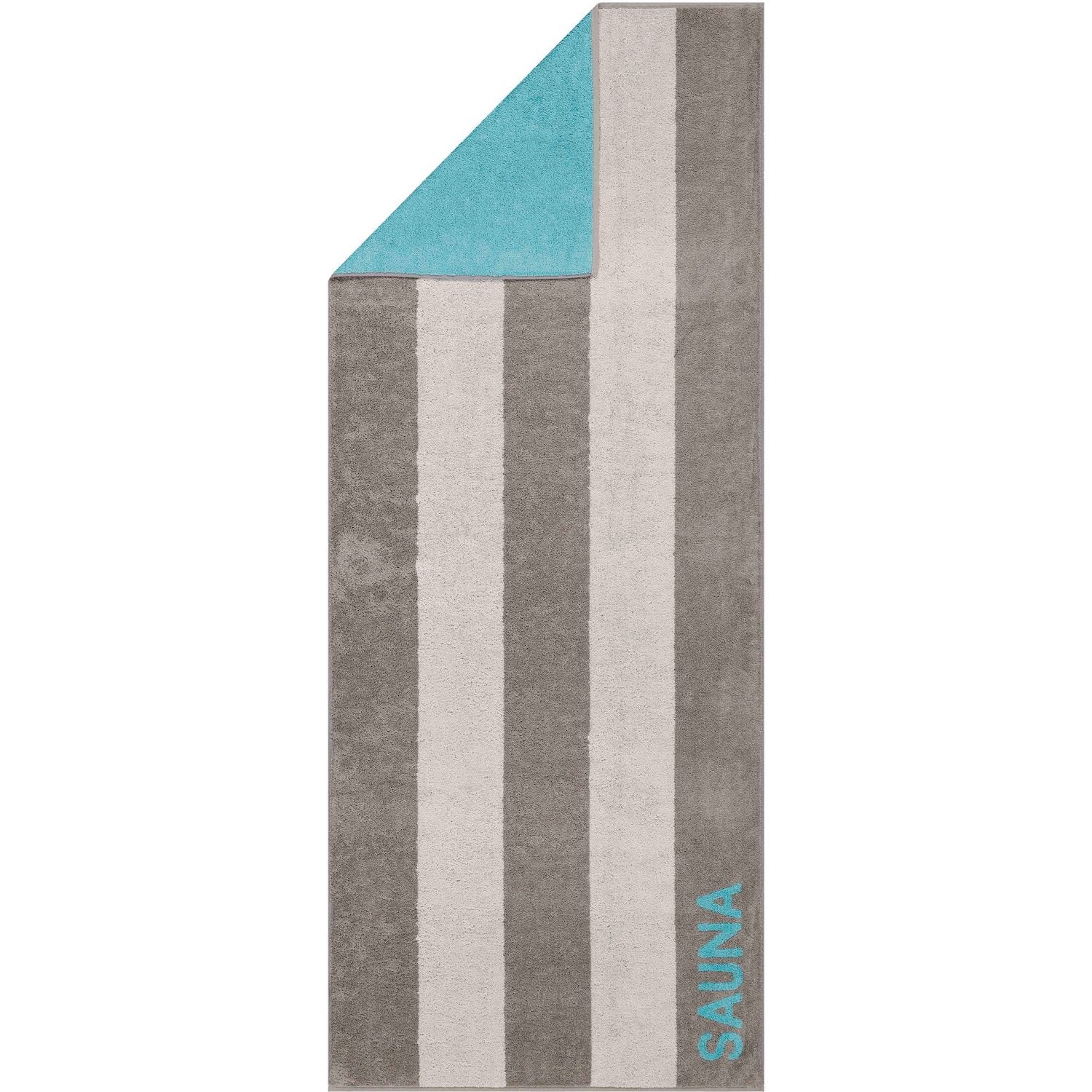 Hochwertiges, modernes Saunatuch 599 von Cawö! Attraktives Streifendesign bringt Frische für jeden Saunabesuch. Dieses Saunatuch ist der ideale Begleiter für Ihren Saunagang. Mit seinem raffinierten Doubleface-Look können Sie sowohl eine gestreifte Seite in Grautönen sowie eine aussagekräftige Uni-Seite genießen. Ganz nach Lust und Laune! Es besteht aus 100% Baumwolle und daher besonders weich und saugfähig.