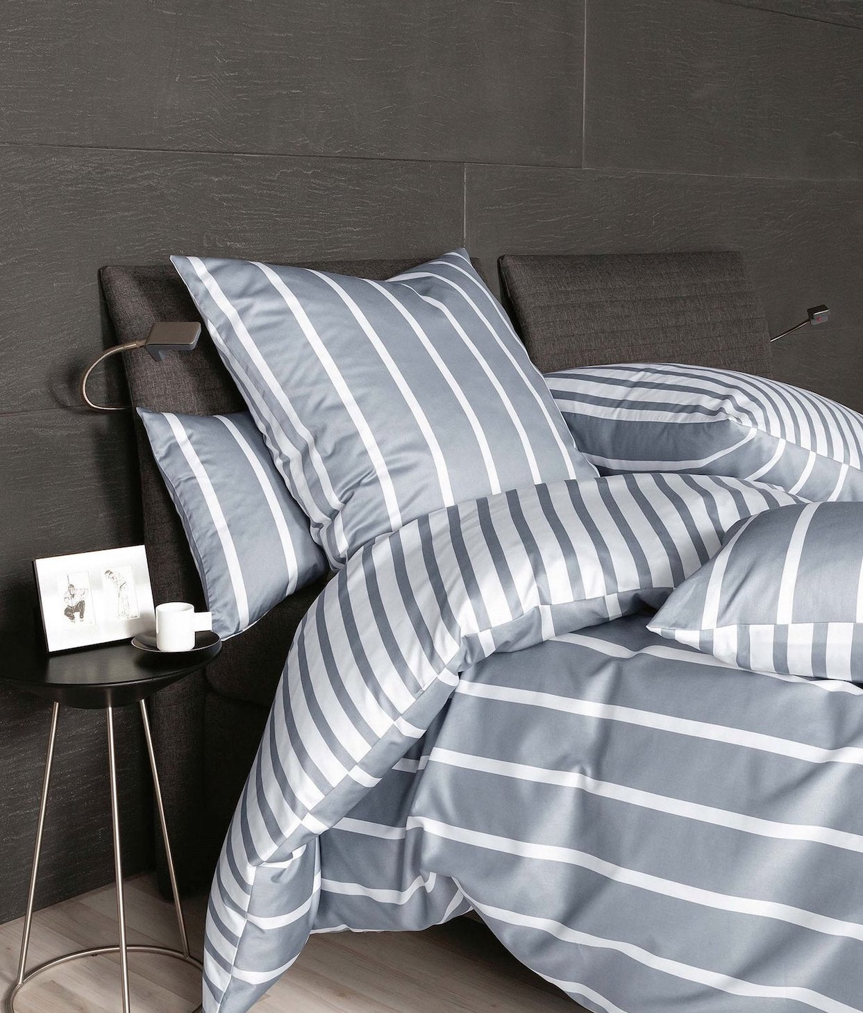 Mit der Janine Bettwäsche modernclassic 39028 kommen Liebhaber moderner Streifenprints voll auf Ihre Kosten. Die Kissen- und Bettdeckenbezüge bringen Leichtigkeit in Ihr Schlafzimmer, während die geradlinige Musterung der Bettwäsche für Struktur sorgt. Mix and Match: Die Bettwäsche ist als Wendebettwäsche konfektioniert und damit stilvoll kombinierbar zu jeglichen Einrichtungsstilen. Die bügelleichte Satin-Qualität aus feinen, supergekämmten Mako-Garnen in 100% naturreiner Baumwolle ist atmungsaktiv, feuchtigkeitsregulierend und glatt – ideal als Winterbettwäsche, aber auch als Sommerbettwäsche geeignet. Zudem ist die Pflege von Mako-Satin Bettwäsche sehr einfach. Sie kann in der Waschmaschine bis 60° C gewaschen und entweder auf der Leine oder im Trockner getrocknet werden.