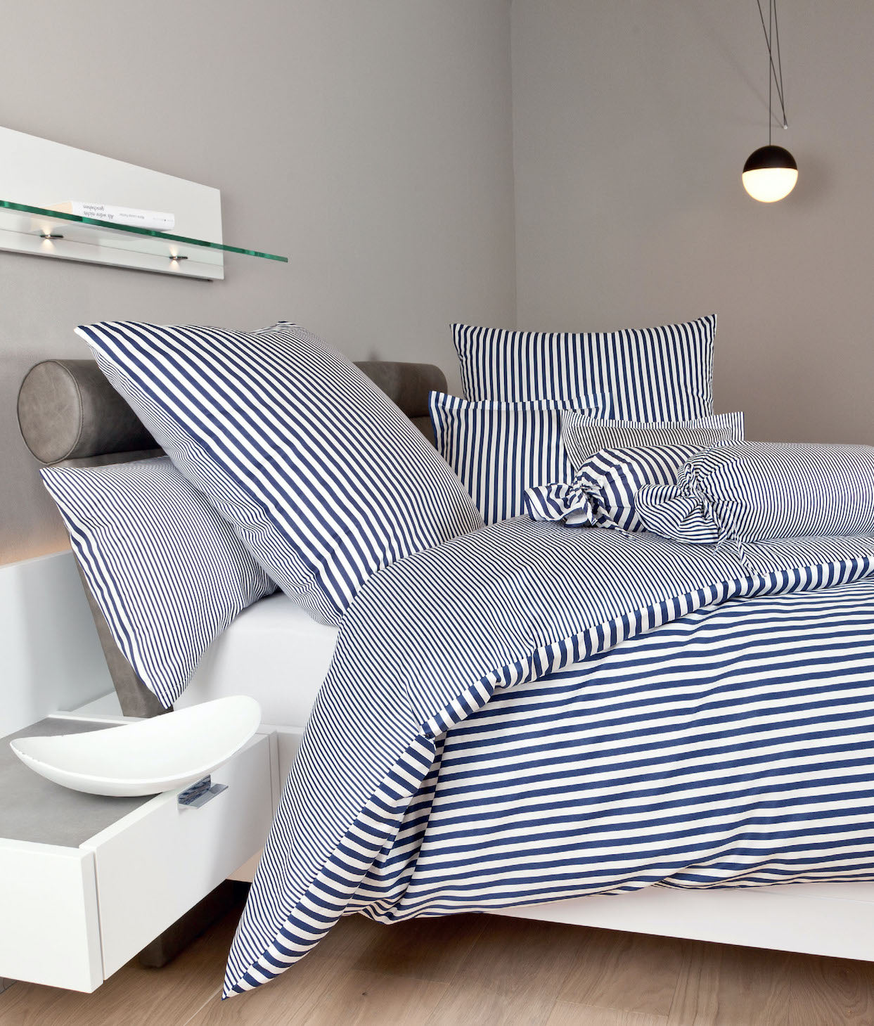 Zeitlos schöne Streifen-Bettwäsche im gemütlichen Landhausstil: Die hochwertige Mako-Satin-Bettwäsche modernclassic 3912 von Janine überzeugt mit einem edlen Wendedesign – wahlweise mit breiten oder feinen Streifen. Erhältlich in vielen stilvollen Farben, passend zu jeder Jahreszeit und Einrichtung. Der feinfädige, seidenschimmernde Stoff aus 100 % naturreiner, gekämmter Mako-Baumwolle fühlt sich angenehm leicht auf der Haut an und bietet höchsten Schlafkomfort. In größeren Größen mit praktischen Längsfalten konfektioniert