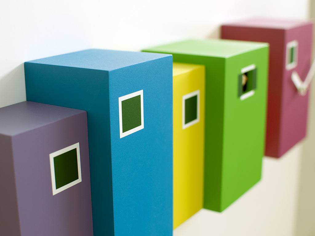 Progetti Wanduhr Burano purple, orange, green and light blue