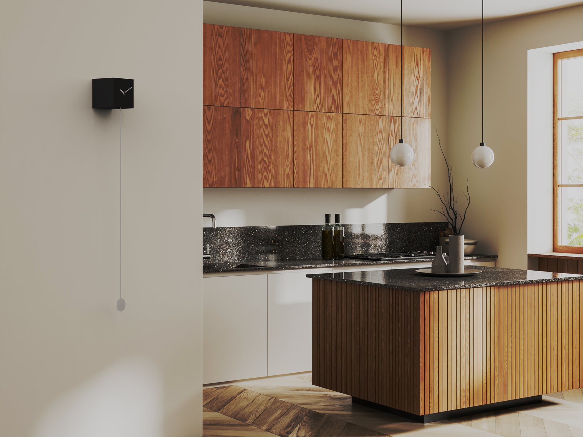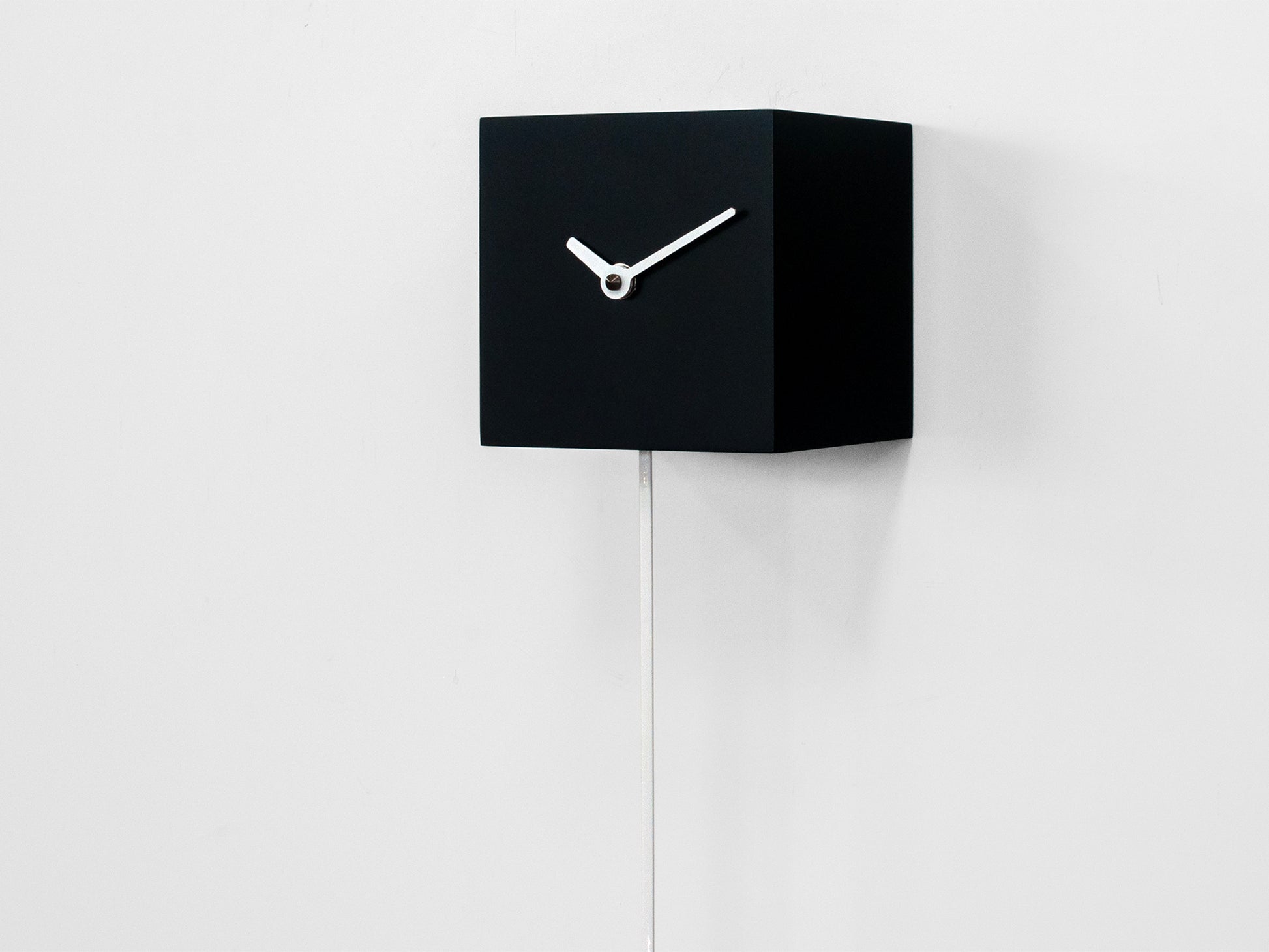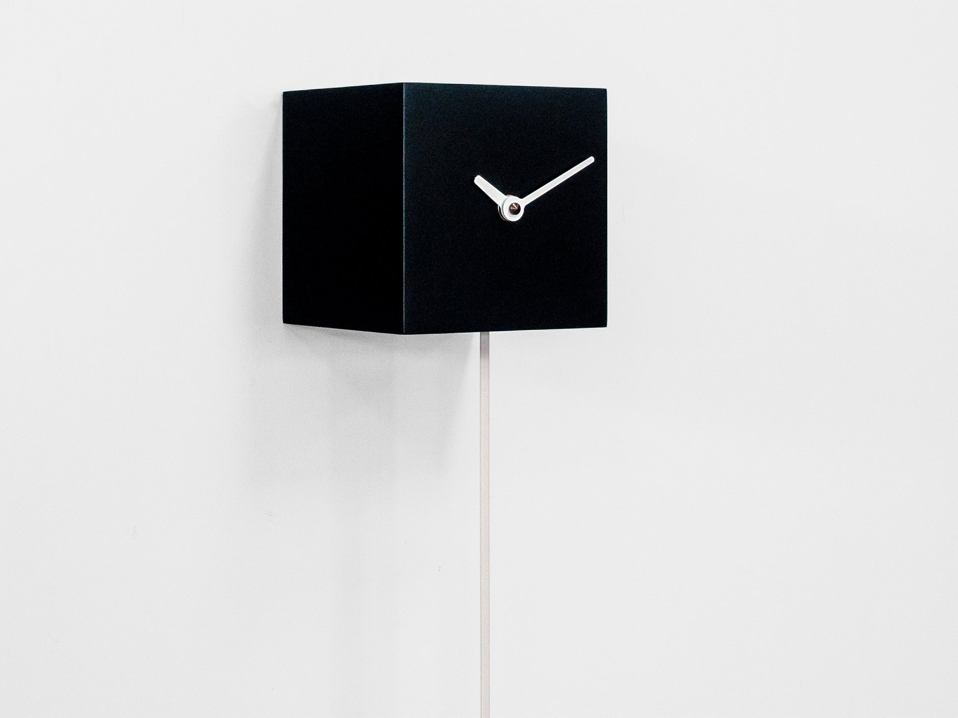 Long_time markiert den Lauf der Zeit mit der Ruhe und Stille des langen Pendelschwungs, der sie charakterisiert. Vertikal entwickelt, besteht die Uhr aus einer kubischen Struktur aus weißem, rotem, grünem oder schwarzem Holz, an deren Spitze sich ein langes weißes Pendel erstreckt. Hergestellt aus Holz. Batteriebetriebenes Quarzwerk.