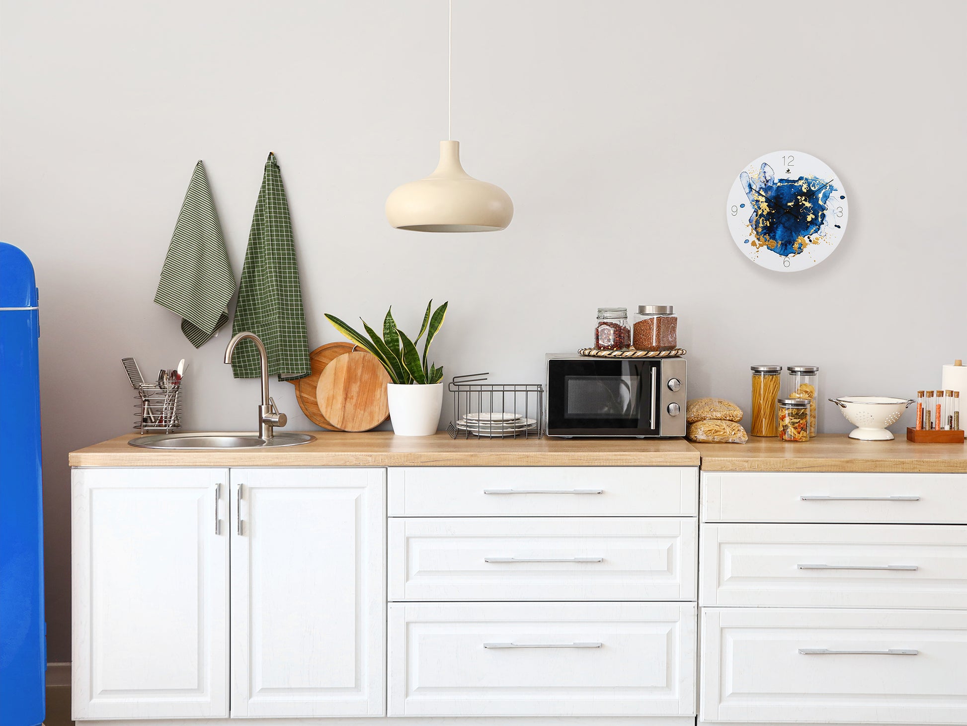 Orolo_Gino ist eine Wanduhr, die mit nur 24 cm Durchmesser klein konzipiert wurde. Die Grafik des Zifferblatts sollte ihre wahre Stärke sein. Das Ergebnis war so gelungen, dass wir beschlossen, eine identische Version mit einem größeren Durchmesser von 33 Zentimetern herzustellen. Zwei verschiedene Zifferblätter sind erhältlich: ein farbenfroheres mit Blattgold auf einem blau getönten Fleck, ein grafischeres, aber beide sehr elegant. Die Eleganz wird durch die Nachbildung der extrem schlanken Zeiger unterstrichen, die sich perfekt integrieren. Hergestellt aus Holz und mit ungiftigen Farben lackiert. Batteriebetriebenes Quarzwerk aus deutscher Produktion.