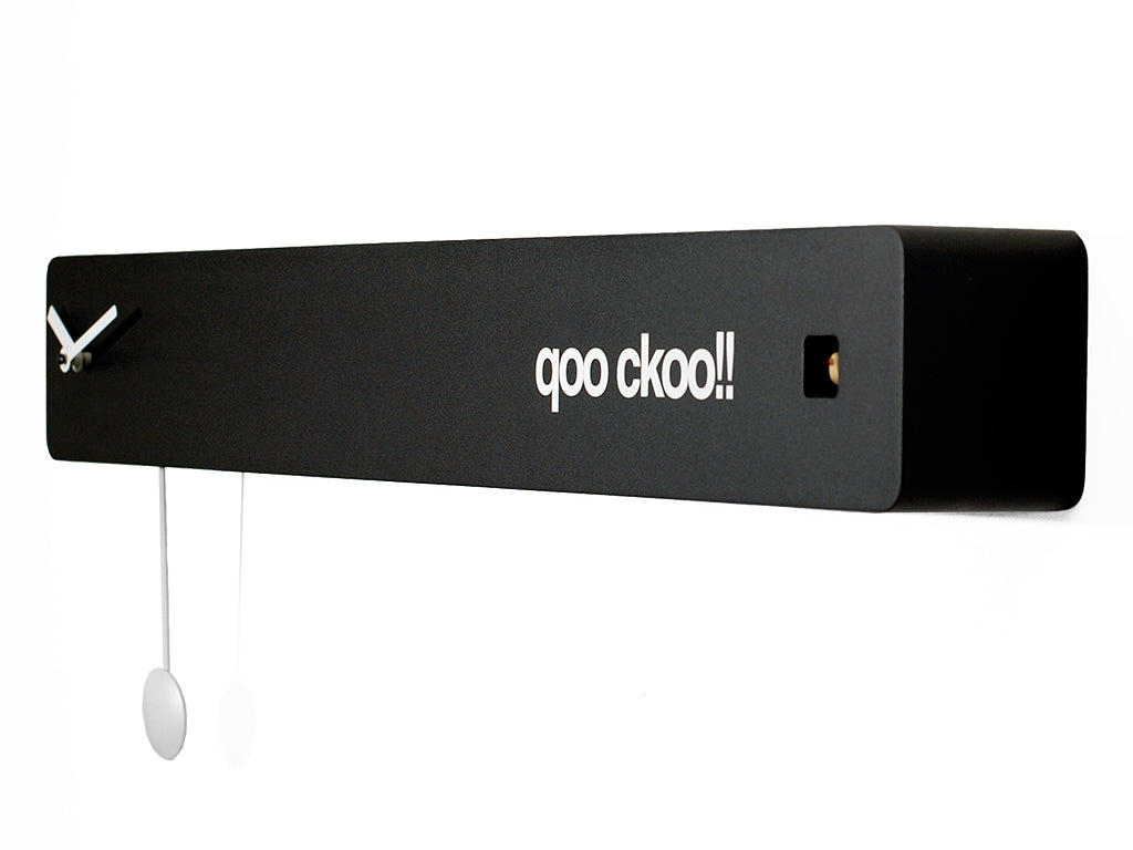 Q02 ist die erste Uhr, die sich vom Trend der Kuckucksuhren mit dem traditionellen Vogelhäuschen absetzt, die diese Uhren seit Jahren prägen. Die Kuckucksfunktion der Q02 wird durch eine schlichte, farbige horizontale oder vertikale Linie dargestellt – innovativ und wirkungsvoll zugleich. Das Pendel und der Schriftzug „coo ckoo!!“, die an einen kleinen Kuckuck erinnern, vervollständigen die Uhr. Das batteriebetriebene Uhrwerk verfügt über einen lichtempfindlichen Sensor, der den Kuckucksruf bei Dunkelheit automatisch abschaltet. Zusätzlich gibt es einen Schalter, um die Lautstärke des Kuckucksrufs zu regulieren oder ihn ganz abzuschalten.