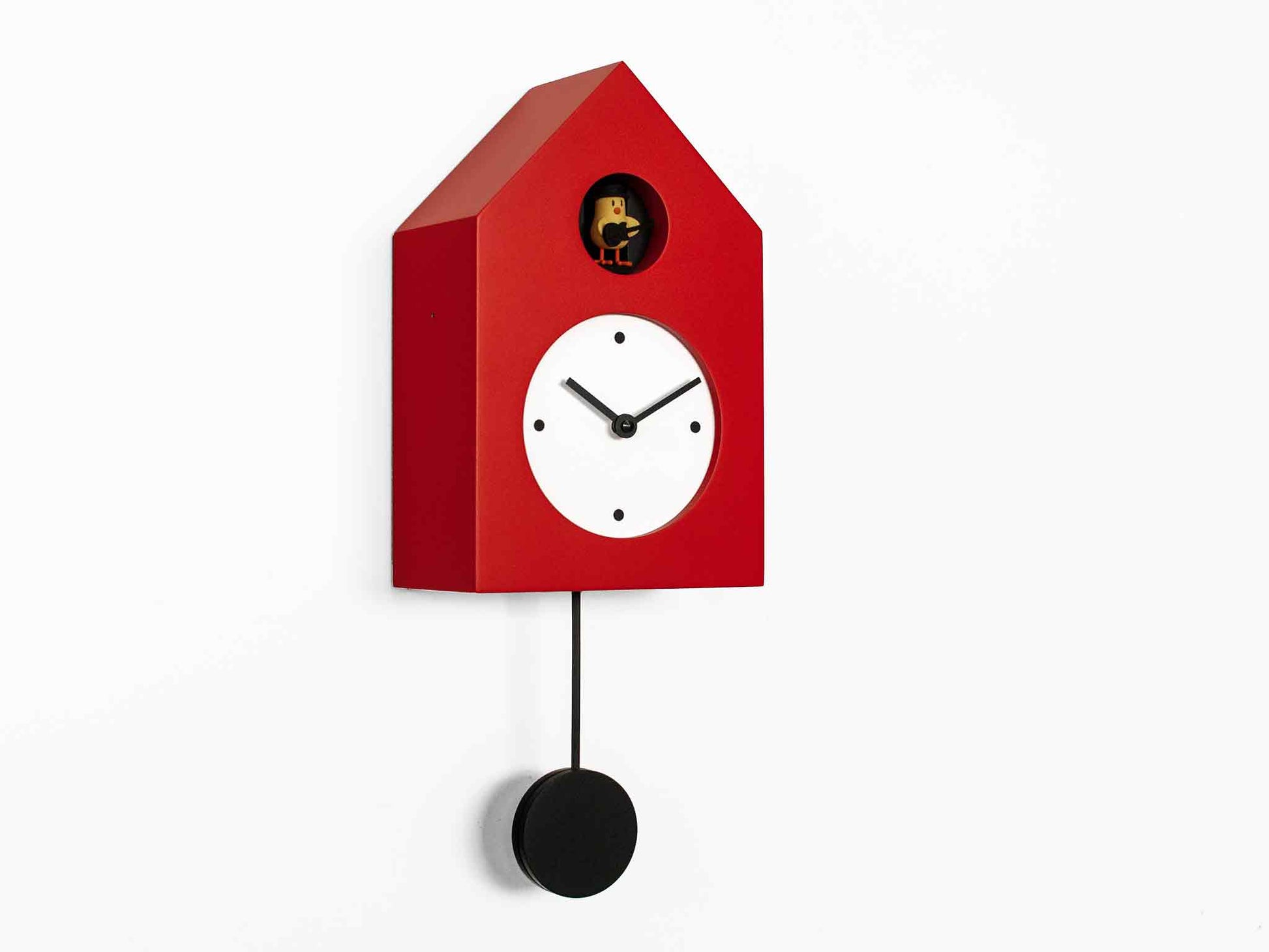 Die Kuckucksuhr Rockbird, entworfen von Gerardo Marì, knüpft an den Erfolg der Freebird-Uhrenfamilie an, indem sie den niedlichen kleinen Vogel in einen Musiker mit Gitarre verwandelt. Die Grundfarben des Hauses sind 3: Weiß, Schwarz oder Rot, wobei die Zifferblätter oder Zeiger ihre Farbe ändern, um die Farbe der Struktur zu ergänzen. Die Pendel sind in allen Ausführungen schwarz. Hergestellt aus lackiertem Holz mit ungiftigen Lacken. Das hochwertige, in Deutschland entworfene Kuckuckswerk wird mit zwei Batterien betrieben, ein Lichtsensor verhindert, dass der Kuckuck bei Dunkelheit ruft. Über einen Schalter lässt sich der Ton regulieren oder ganz abschalten.