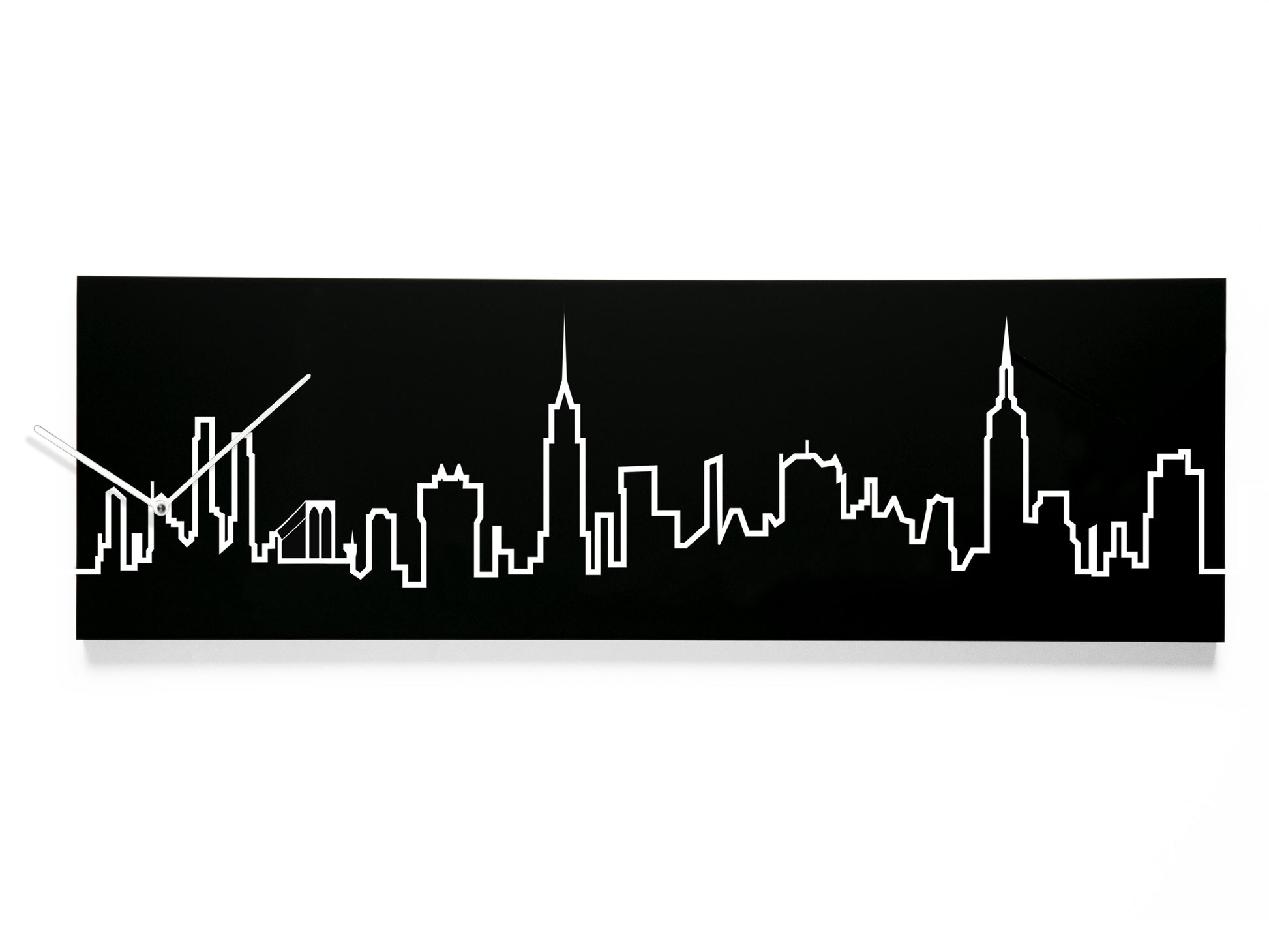 Die Skylines der schönsten Städte der Welt, stilisiert mit einfachen Skizzen und hervorgehoben auf schwarzem, rotem oder weißem Hintergrund. Die Zeichnung ist auf den ersten beiden Hintergründen weiß und auf dem weißen schwarz. Verfügbare Städte sind: Mailand, Florenz, Rom, Turin, Verona, Paris, London, New York, Toronto, Istanbul, Moskau und Hongkong. Die Idee ist einfach, aber sehr beeindruckend. Die Skyline besteht aus Holz und ist mit ungiftiger Farbe lackiert. Sie wird mit Batterien und einem Quarzwerk betrieben.
