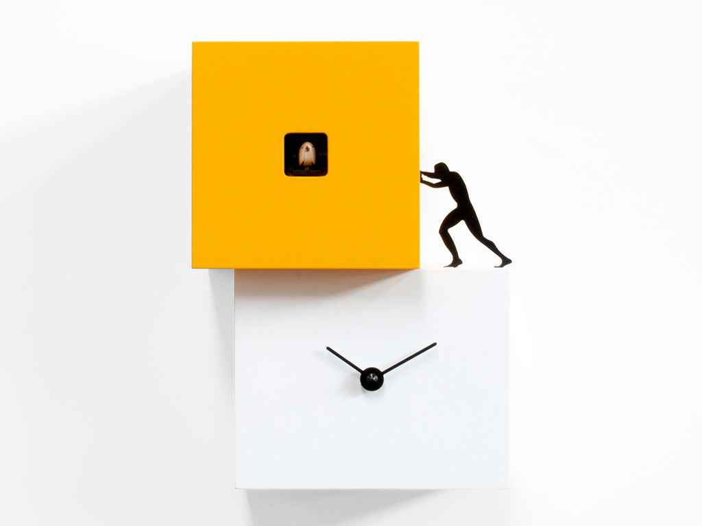 Progetti Wanduhr Strong cucù 1 white/yellow