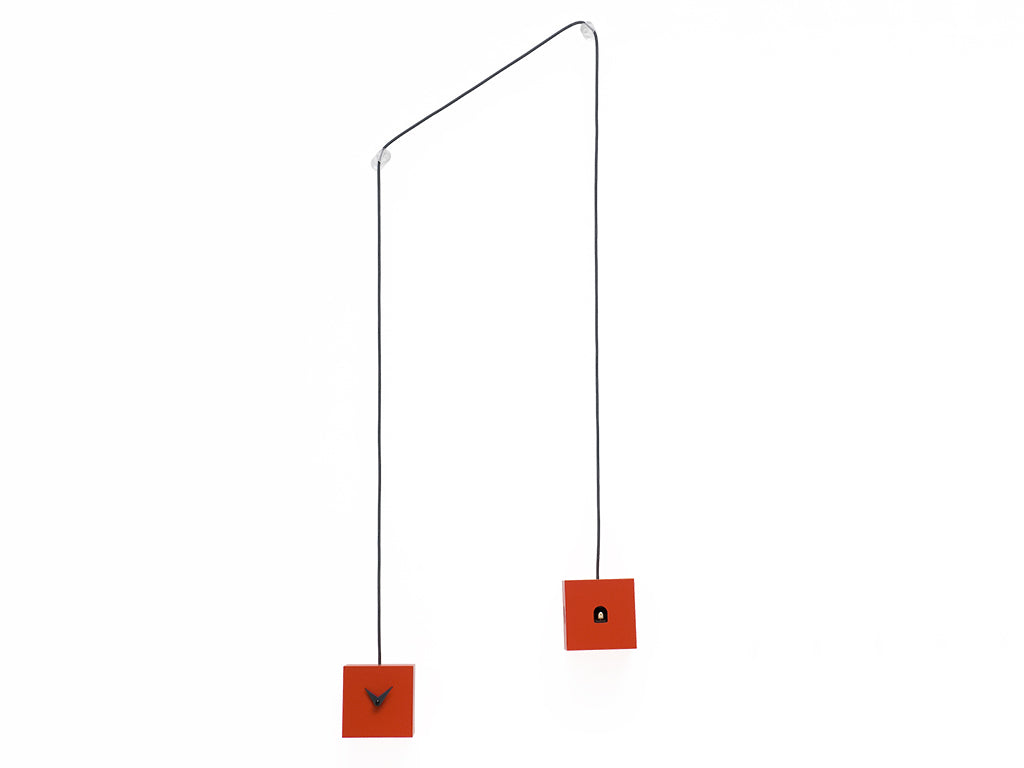 Als Kinder spielten viele von uns mit selbstgebauten Telefonen. Zwei Dosen und eine Schnur ermöglichten die Kommunikation über große Entfernungen! TuTu ist die erste Kuckucksuhr, bei der der Kuckuck über zwei Meter von der Uhr entfernt ist und die beiden über ein Stromkabel „kommunizieren“ können. Dank dieser genialen Intuition kann die Uhr auf zahlreiche Arten aufgestellt werden. Dank zweier in das Kabel eingesetzter Plexiglaszylinder können die beiden Würfel in unterschiedlicher Höhe angebracht, von der Decke gehängt oder an getrennten Wänden aufgestellt werden. Die Uhr ist aus Holz gefertigt und mit ungiftiger Farbe lackiert. Das batteriebetriebene Uhrwerk verfügt über einen lichtempfindlichen Sensor, der den Kuckucksruf bei Dunkelheit automatisch abschaltet. Außerdem gibt es einen Schalter, mit dem sich die Lautstärke des Kuckucksrufs regulieren oder ihn ganz abschalten lässt.